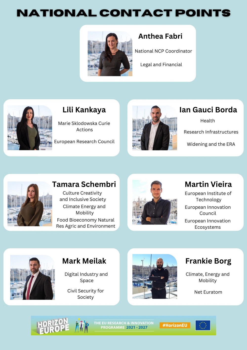Get in touch with the above NCPs by sending an email on horizon.malta@gov.mt