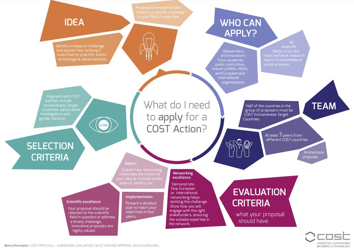 Participants planning to submit a proposal for a COST Action will need to refer to the SESA guidelines and to the Open Call Announcement on the Documents and Guidelines page.