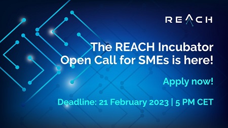 EU funded REACH Incubator is running its 3rd and final open call for data driven startups, to facilitate the development of trusted and secure innovative solutions based on industrial and personal data.