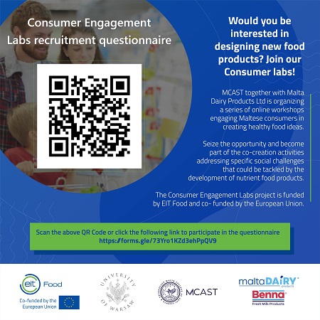 An opportunity to take part in co- creation workshops is made available in the framework of the Consumer Engagement Labs project implemented by MCAST together with the Warsaw University and Malta Dairy Products Ltd. The project aims to engage consumers in co-creation activities addressing specific social challenges of obesity and lactose sensitivity that could be addressed by the development of new food products. Therefore by filling the present questionnaire you express the ...